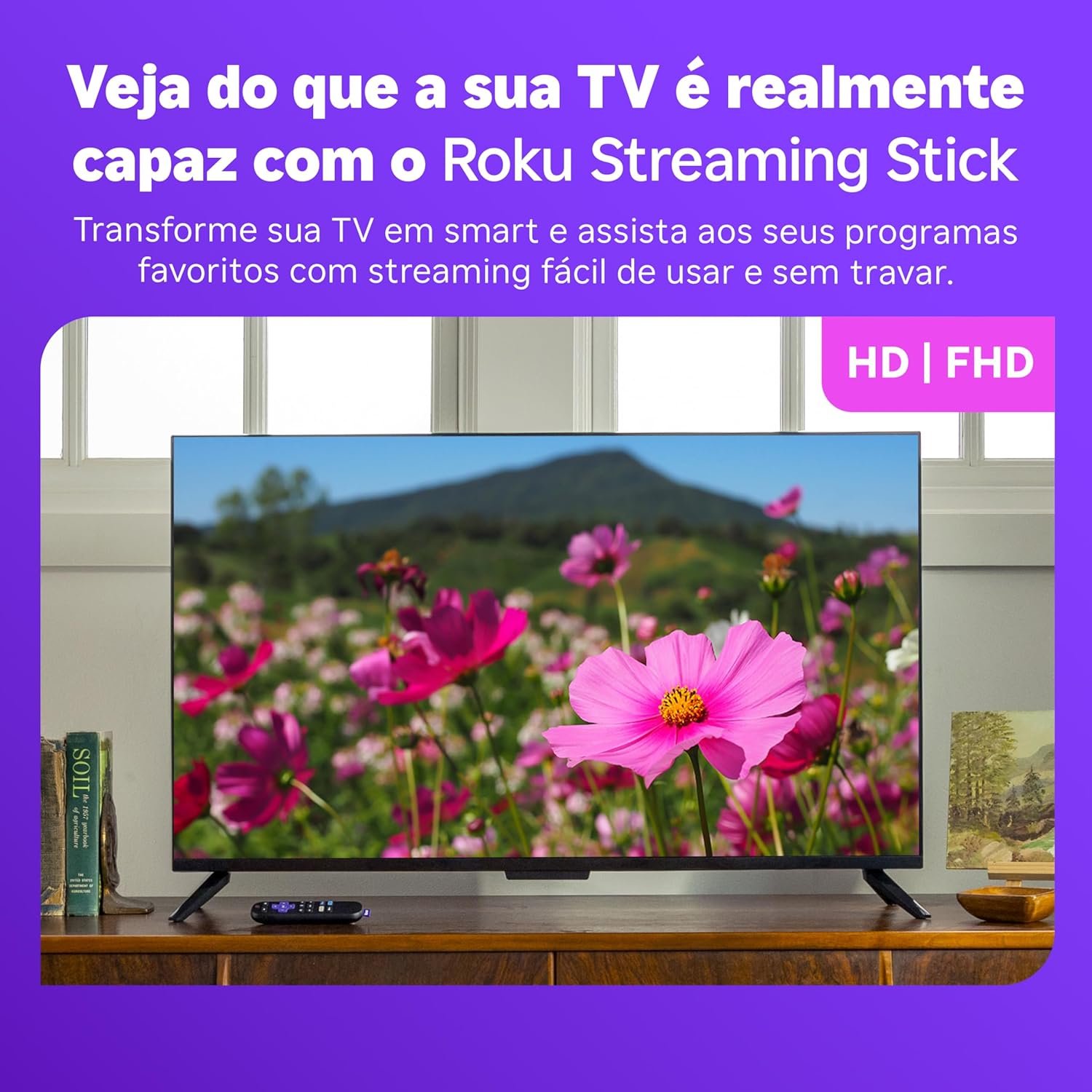 Roku Streaming Stick HD 2025 | Dispositivo de streaming para TV HD/FHD com controle remoto por comando de voz compatível com Alexa, Siri e Google